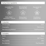 Scalp ScienceTraditional styling pastes are packed full of silicones, petrolatum, and other fillers known to build up on the hair and scalp, leading to an array of scalp conditions.