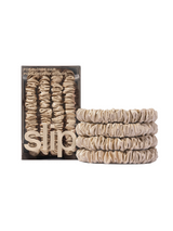 Blonde includes: 4 x blonde pure silk skinny scrunchiesComposition