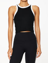 The Kiki Rib Crop Tank will go perfectly over your favorite Splits59 set. Splits59's rib fabrication is ultra-luxe and soft and made in the USA. Complete with a high neckline and contrast trim, this tank is sure to be a new everyday staple.