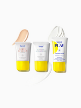 This handy kit is the easiest way to try the sunscreen you've seen all over your feed or stock up on your faves before your next trip. Glowscreen SPF 40 is a glowy tinted sunscreen with a luminous, sunkissed finish that primes for makeup, visibly evens tone and is clinically tested to deliver all-day hydration*. Unseen Sunscreen SPF 50 is the iconic 100% invisible, weightless, scentless sunscreen that’s non-irritating, doubles as a primer for all-day makeup wear² and is clinically tested to improve skin clarity¹. PLAY Everyday Lotion SPF 50 is a fast-absorbing, non-greasy sunscreen face and body lotion that hydrates skin and is water- and sweat-resistant for 80 minutes.