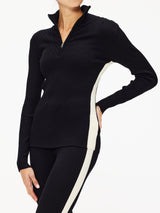 This half-zip knit is crafted from a soft viscose yarn with a fine rib finish. The perfect alpine base layer, it also features a contrasting side panel for an effortlessly elevated aesthetic.Size & Fit