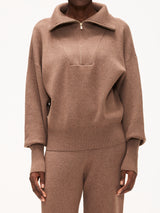 The Olly half-zip knit sweater has dropped shoulders and ribbed cuffs with a soft feel. For a more oversized look, we recommend a size up.