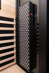 ✔ Hybrid heating system combines advanced carbon FAR panels with halogen + quartz full-spectrum emitters for complete therapeutic coverage