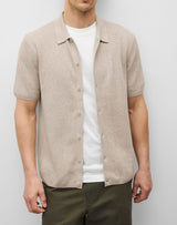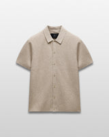 This short sleeve knit shirt is crafted from a breathable cotton-linen blend with the softest touch. Featuring a standard fit with fully fashioned seams. Designed with a half-milano stitch collar and placket, tonal logo buttons, and lycra-bound cuffs and hem.