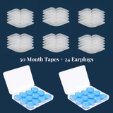 Noise-canceling earplugs and gentle mouth tape for a better night's rest. Reduces sound and disruption for sleep, study, work or travel.