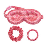 Includes: 1 x daisy contour sleep mask (3.8" x 8.4" / 9.5cm x 21.2cm), 1 x daisy pure silk skinny scrunchie, 1 x blush pure silk large scrunchie