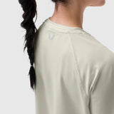 Lightweight mid-crop training tee made from AeroSilver®, the brand's next-generation silver-infused performance fabric built for durability, breathability, and odor resistance. Designed with a curved hem and side splits reinforced with tack seams for added flexibility. Reflective logo details provide visibility during low-light workouts.