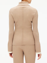 Crafted from soft fine rib and tailored to a slim fit, it remains sleek when layered, providing both comfort and softness. Subtle cuff tipping and a slight flared cuff shape lend a modern touch to the classic design.