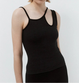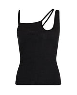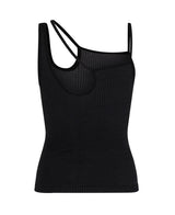 Superfine Merino wool seamless asymmetric tank with cut-out detailing. Offers mid compression in a single layer knit for a second-skin feel against the body. Made in Nagnata's signature Core line fabrication with two-tone rib structure the elliptic tank is intended as a versatile uniform piece with no external branding.