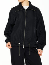 This blouson zip-front jacket in Shimmer Nylon is the perfect mix of ease and elegance. Designed for relaxed days, it’s detailed with an exposed drawcord with ruffled trim and sleek piping along the sleeves for a subtle, stylish twist.