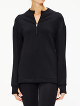 The Cleo midlayer is made in our Lightweight Spacer fabric with a dropped back hem for extra coverage. Side seam pockets and thumbholes give this elegant, active pullover a functional edge.Composition