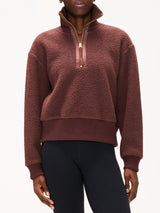 Spotlighting the brand's 100% Recycled Plush Borg Fleece, this style is cut with a half-zip collar, ribbed cuffs and loose fit sleeves. Trademark side zip detailing and a luxe sateen trim elevate the design.