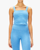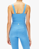 Be a square. This tank has wide straps and a square neckline that looks modern while offering medium support. It has a built-in bra with honeycomb mesh lining and removable cups. Made from Vuori's performance stretch knit from mostly recycled materials, it wicks away moisture while you move.