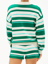 The Retreat Collar Knit in College Green is a relaxed V-neck collared sweater that is made from a mid weight knit fabrication that features stripe detailing on the sleeve. This is the ultimate layering piece and pairs well with the matching Retreat Knit Pant and or your favourite leggings for an elevated athleisure look.