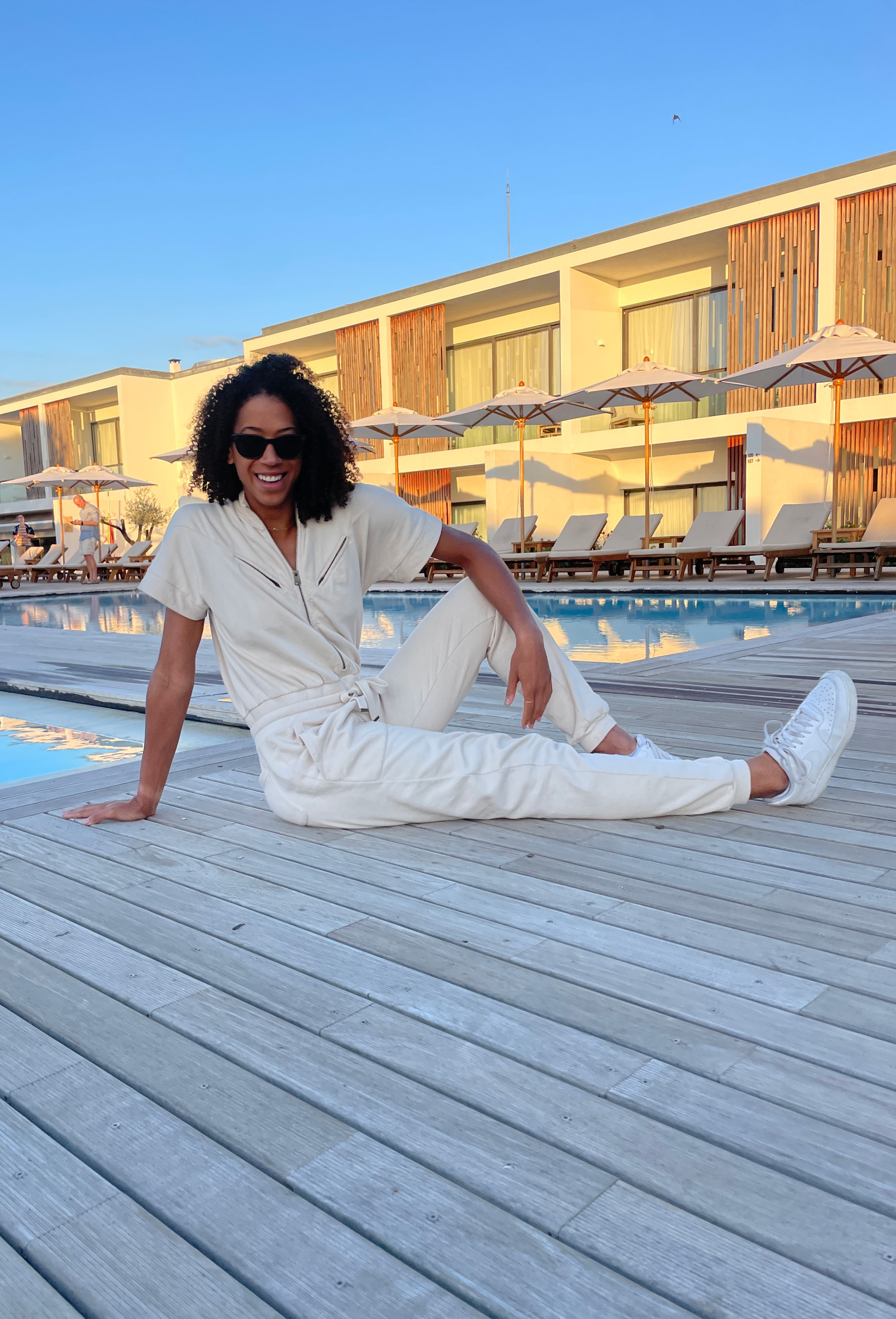 The Los Angeles-based 35-year-old grew up in a family of athletes; her mom a basketball star, her dad a golfer and baseball player. “They joke that I came out of the womb, and it was like, ‘Which one of the balls do you want?’” she says. She paved her own path, falling “madly in love” with volleyball in seventh grade and becoming a Division I athlete at the University of Memphis and Butler University.
