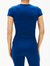 A new Ultimate style has landed. Meet the Ultimate Curved Hem Short Sleeve Top. A new flattering silhouette made from the brand's classic Ultimate four way stretch fabric. It features short sleeves and a curved hem fit. Style yours with the brand's leggings.