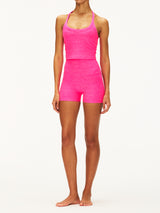 V neckline, Wide racerback, Self shelf bra, Cropped length, Designed to uniquely flatter every shapeComposition