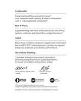 Blood Flow combines US grown organic beet root (dried below 106°F/41°C) with propionyl l-carnitine to support enhanced anaerobic and aerobic performance.¹