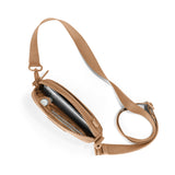 Mara, Mara on the wall, who’s the fairest neoprene phone sling of them all? Okay, so Mara probably isn’t on a wall. It’s on your body, thanks to a fully adjustable shoulder strap. That means your hands are free to do whatever they please—choose a new hot sauce, put hot sauce on wings, put wings in mouth, or maybe something wholesome like knit. With this neoprene phone sling, the possibilities are essentially endless because with multiple pockets, card slots, and a D-ring for keys, Mara was made for the essentials. How’s that for fair? The lining, shoe bag, and dust bag are all made from Repreve® recycled polyester – a durable, versatile material that turns recycled bottles into bags. This process involves less water, energy, and greenhouse gases than it does to create virgin fibers. They use 100% premium neoprene, a high-tech fabric that is water resistant and hand washable. It’s insulating and shock-absorbent thanks to the material makeup. A modern material for modern needs, the durability and versatility are endless.