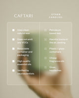Revitalize with a gentle boost of energy. Caftari's proprietary fragrance blend featuring bergamot essential oil is designed to promote the release of endorphins, a neurotransmitter in the brain known as a feel-good chemical. This neurotransmitter is associated with Gamma brainwaves, which are emitted when they are in a heightened state of awareness.