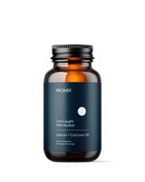 Promix fish oil combines wild, line-caught Alaskan salmon and cod liver oil, sourced and processed in Alaska for peak freshness. Low-heat extraction safeguards naturally occurring bioactive compounds including astaxanthin and pro-resolving mediators. Promix fish oil is unconcentrated to reduce processing and retain vitamins A and D.¹