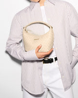 Woven nylon gives the Mini Woven Hobo its signature texture, pairing effortlessly with leather trim and a softly structured shape. With a zip