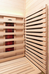 ✔ Hybrid heating system combines advanced carbon FAR panels with halogen + quartz full-spectrum emitters for complete therapeutic coverage