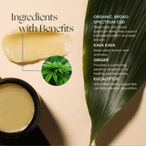 - A potent infusion of organically grown kava kava, ginger, St. John’s wort, eucalyptus, and more — plus full-spectrum hemp extract and a moisturizing base of coconut MCT, castor oil, and beeswax.