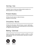 Post-workout shakes, smoothies, baking & between meals to meet protein goals.